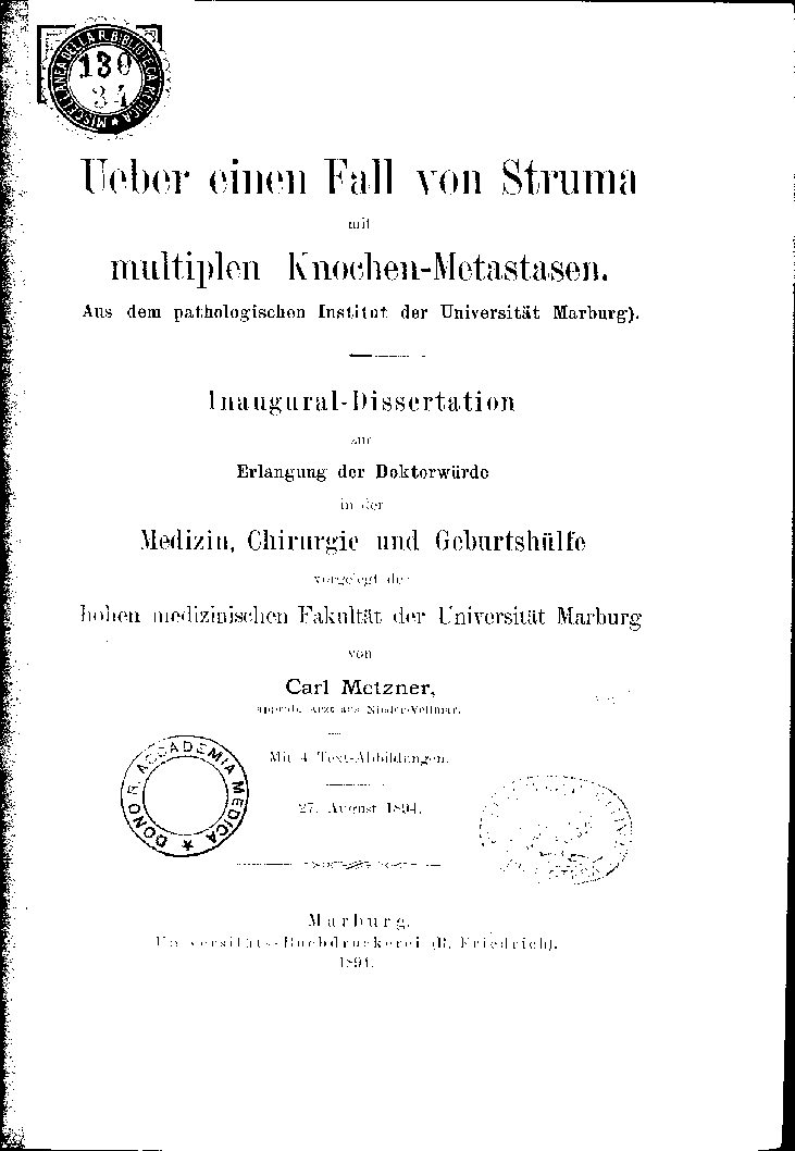 hohen medizinischen Fakultät der Universität Marburg