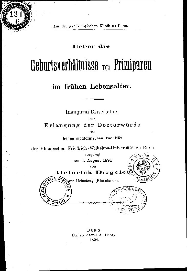 der Rheinischen Friedrich-Wilhelms-Universität zu Bonn