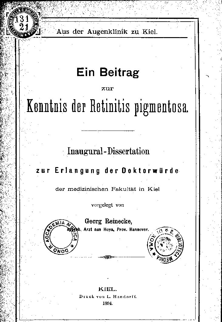 Kenntnis der Retinitis pigmentosa.