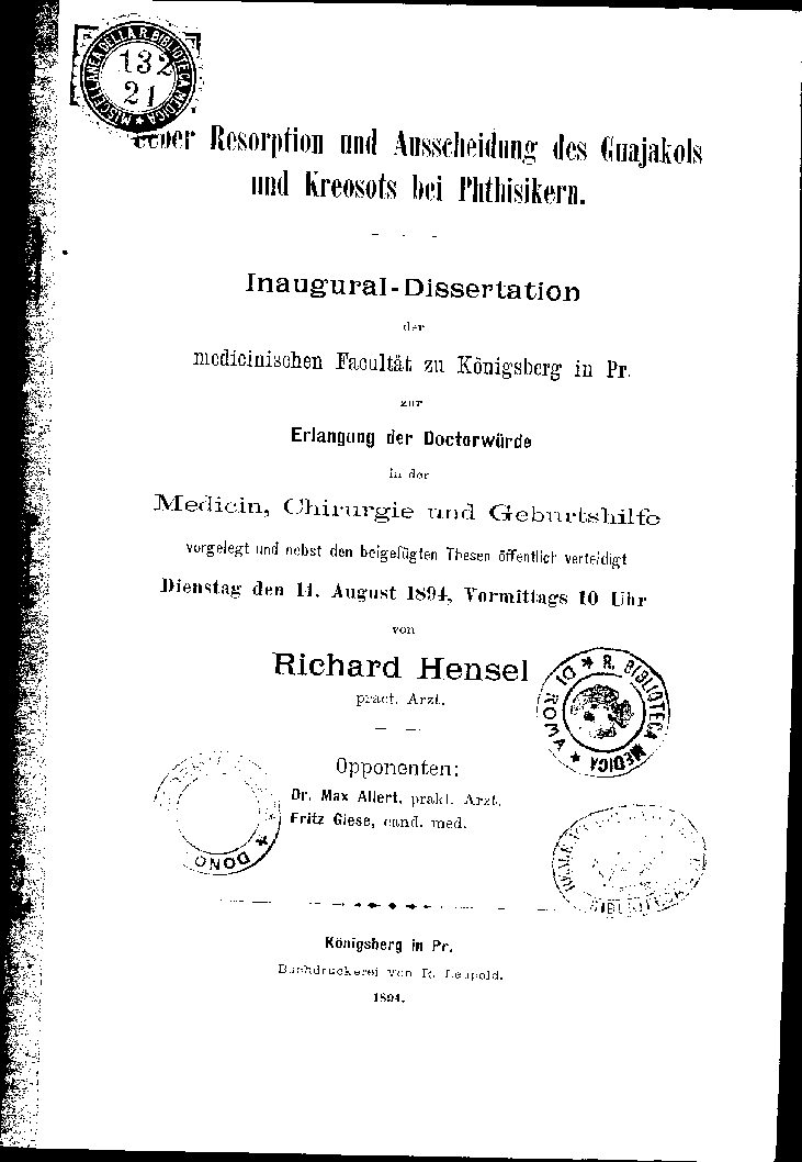 medicinischen Facultät zu Königsberg in Pr.