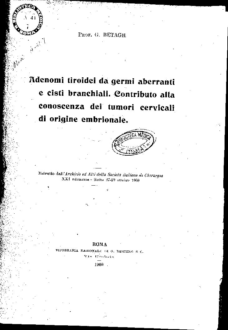 Estratto dall Archivio ed Atti della Società italiana di Chirurg a