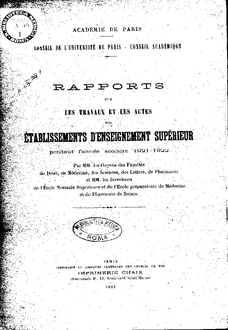 de l Ecole Normale Supérieuer et de I École préparatoire de Médecine