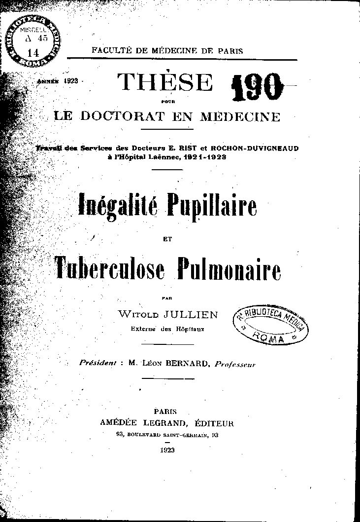 Travail des Services des Docteurs E. RIST et ROCHON-DUVIGNEAUD
