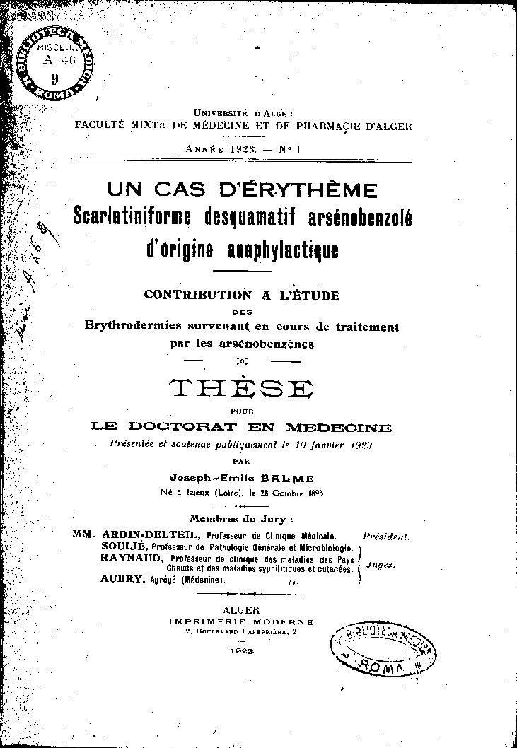 Présentée et soutenue publiquement le 10 janvier 1923