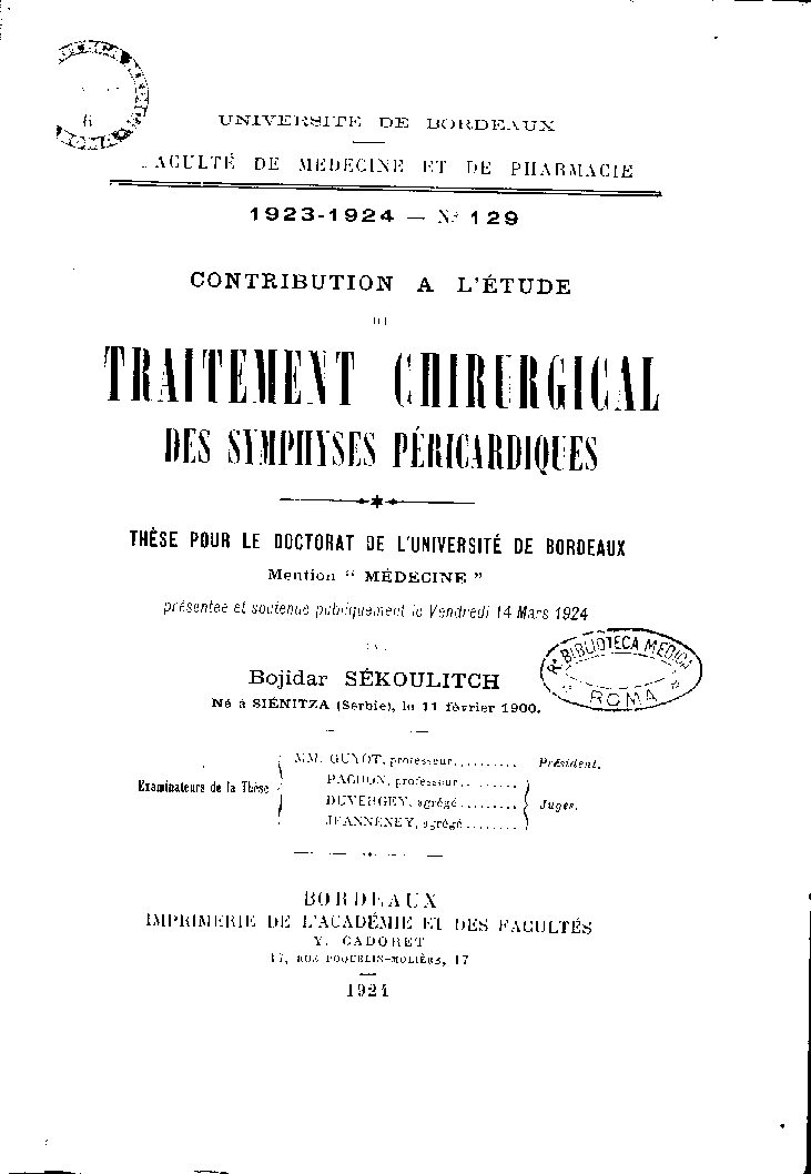 Présentée et soutenue publiquement le Vendredi 14 Mars 1924