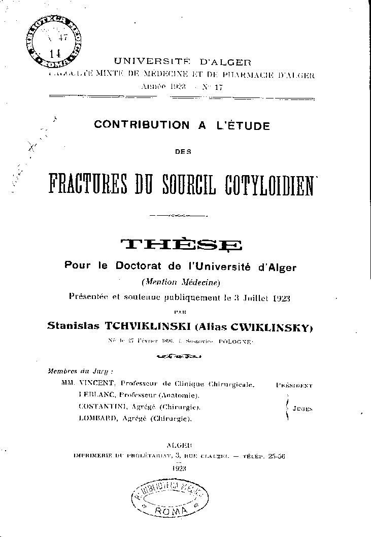 Stanislas TCHVIKLINSKI (Alias CWIKLINSKY)