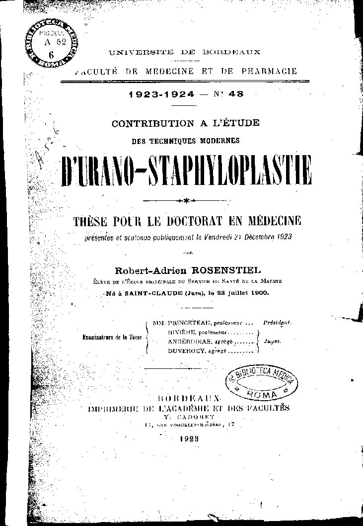 présentée et soutenue publiquement le Vendredi 21 Décembre 1923