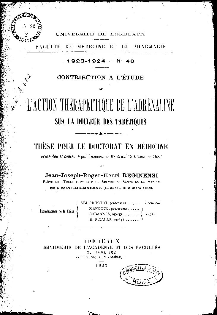 présentée et soutenue publiquement le Mercredi 19 Décembre 1923