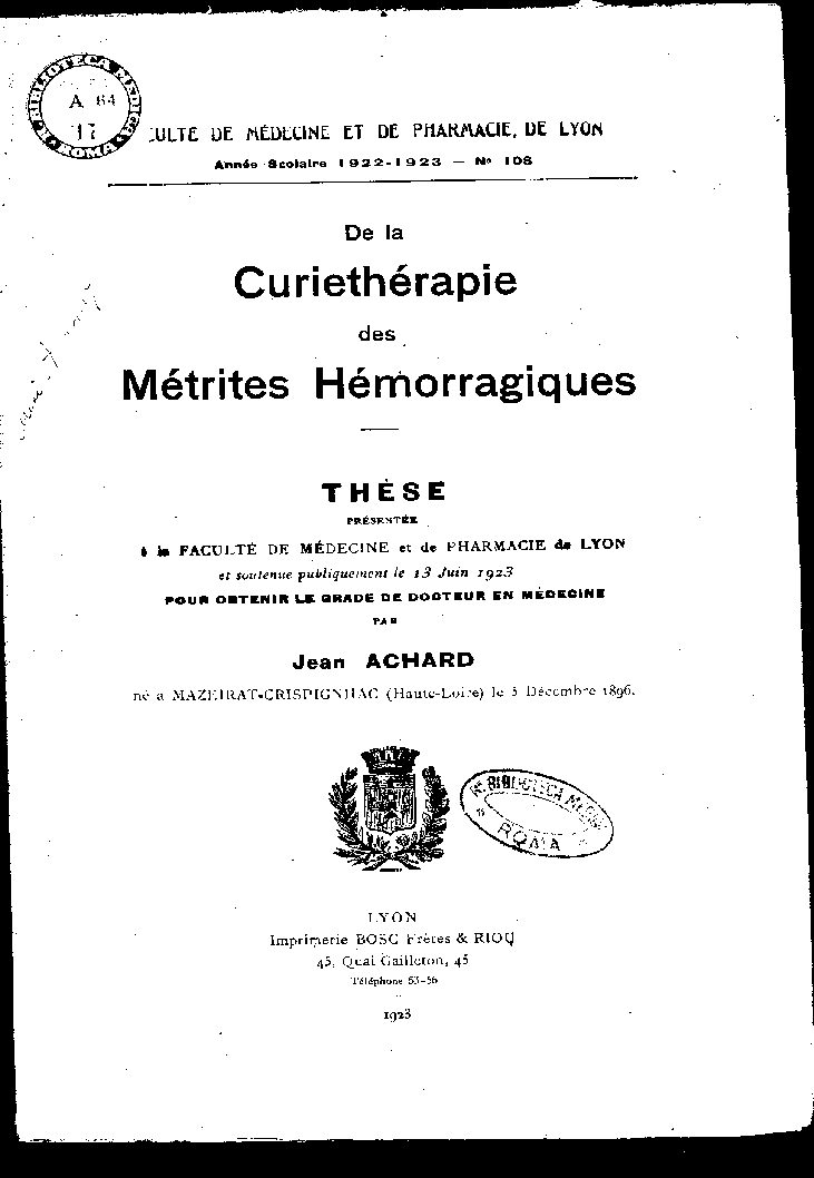 ULTÉ DE MÉDECINE ET DE PHARMACIE, DE LYON