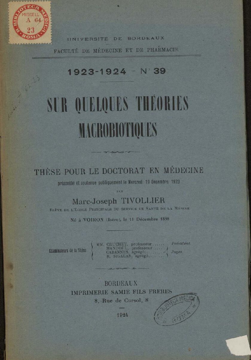 présentée et soutenue publiquement le mercredi 19 Décembre 1923