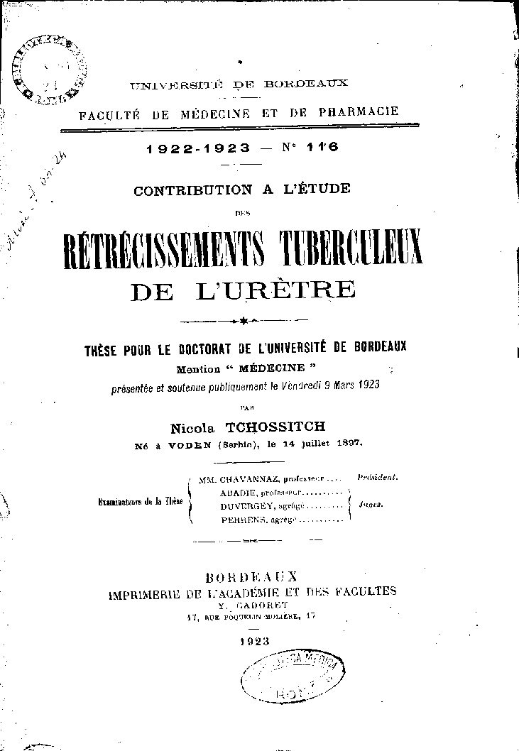 présentée et soutenue publiquement le Vendredi 9 Mars 1923