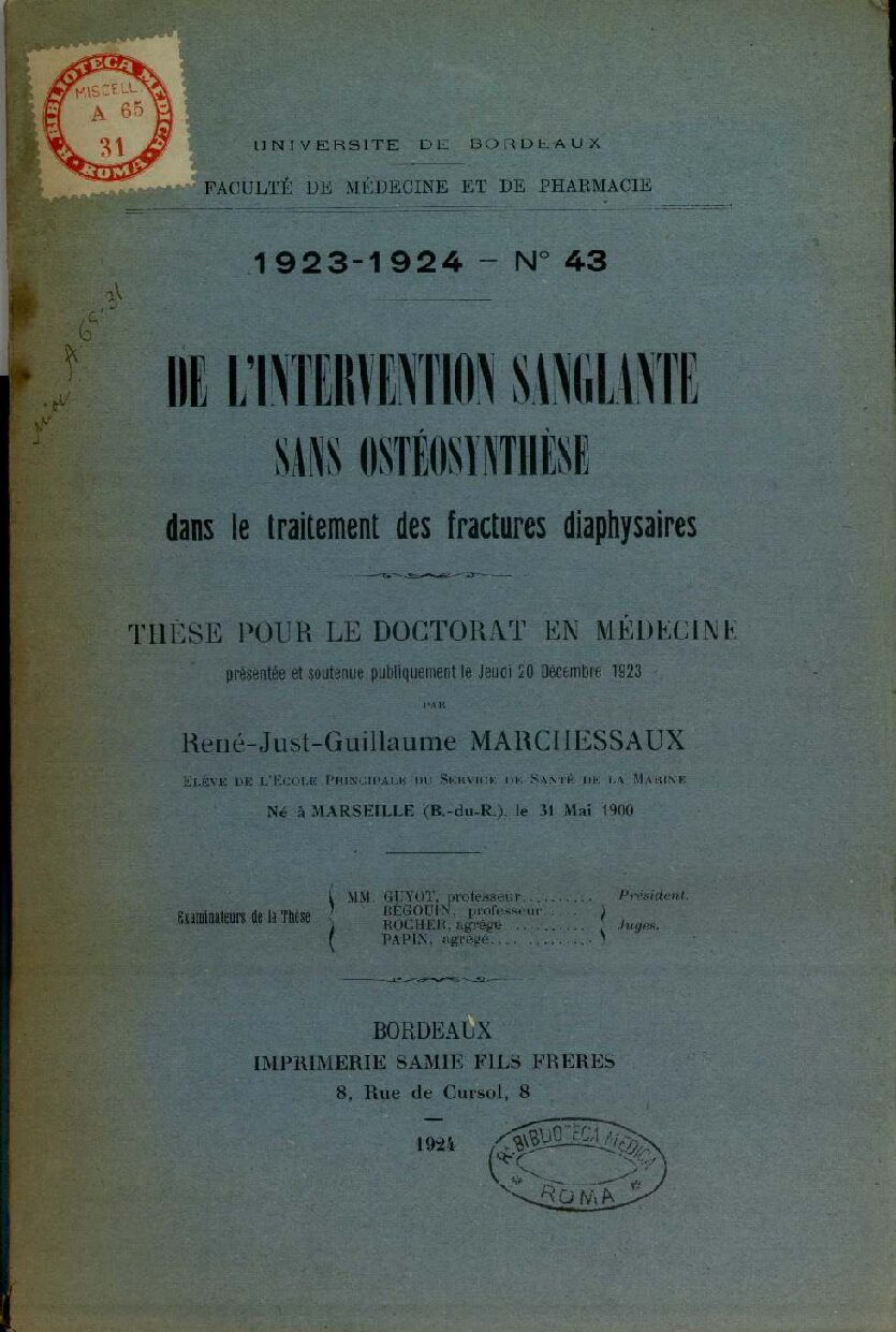 présentée et soutenue publiquement le Jeudi 20 Décembre 1923