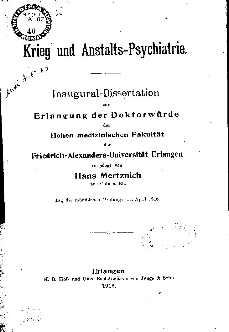 Krieg und Anstalts-Psychiatrie.