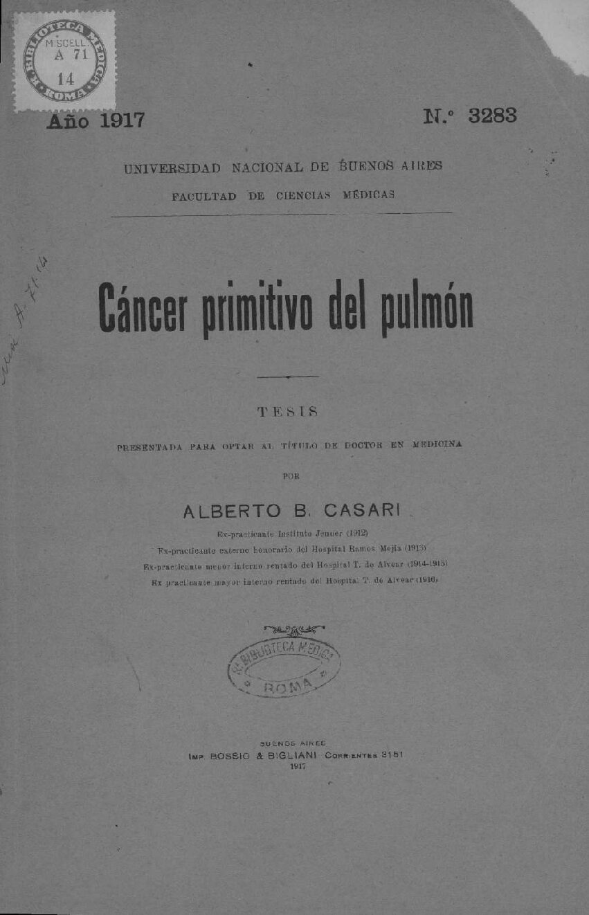 Ex practicante mayor interno rentado del Hospital T. de Alvear (1916)
