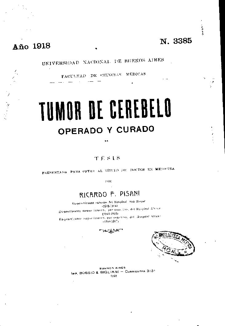 Ex-practicante mayor interno. por concurso, del Hospital Alvear