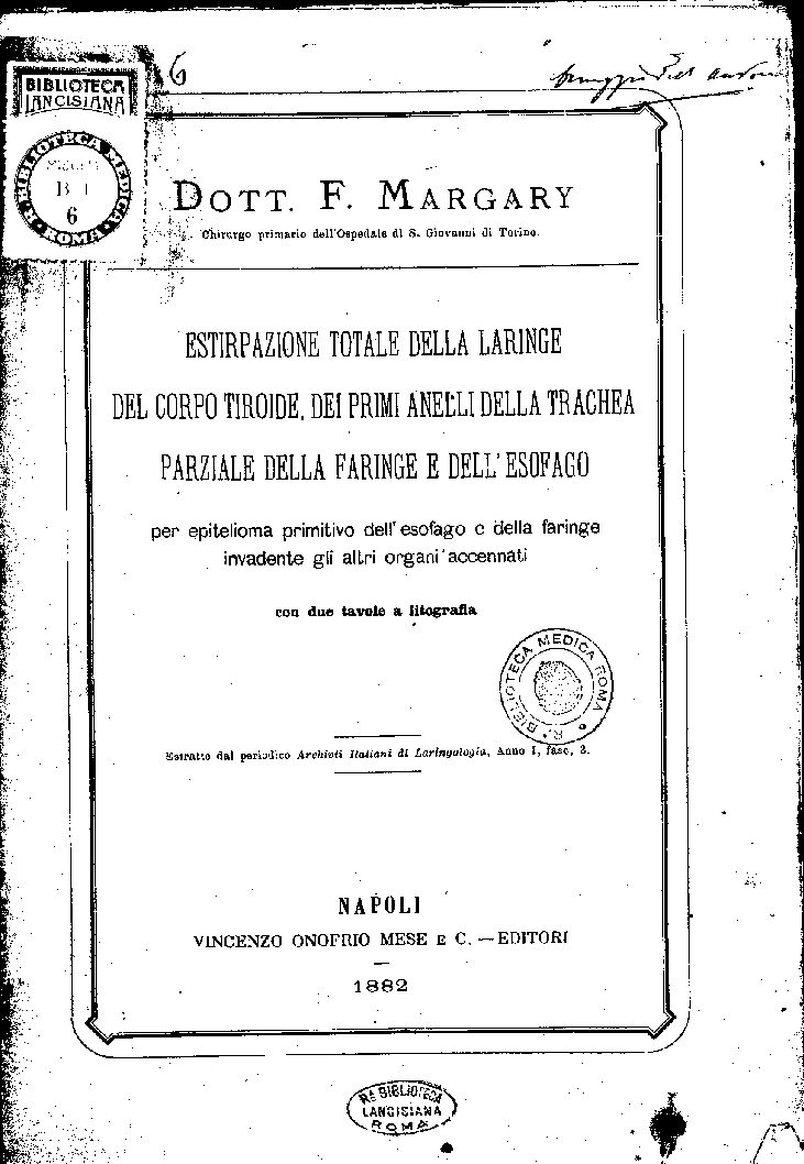 Estratto dal periodico Archivii Italiani di Laringologia, Anno I, fasc. 3.
