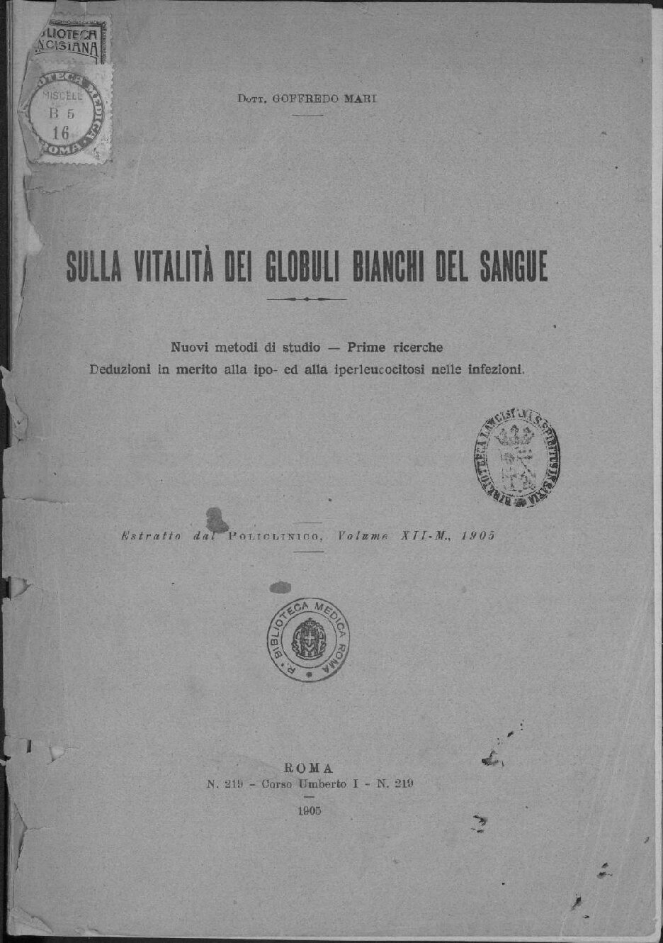 SULLA VITALITÀ DEI GLOBULI BIANCHI DEL SANGUE