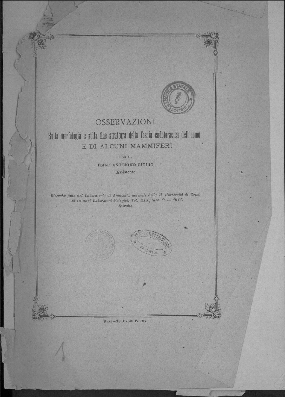 Roma – Tip. Fratelli Pallotta.