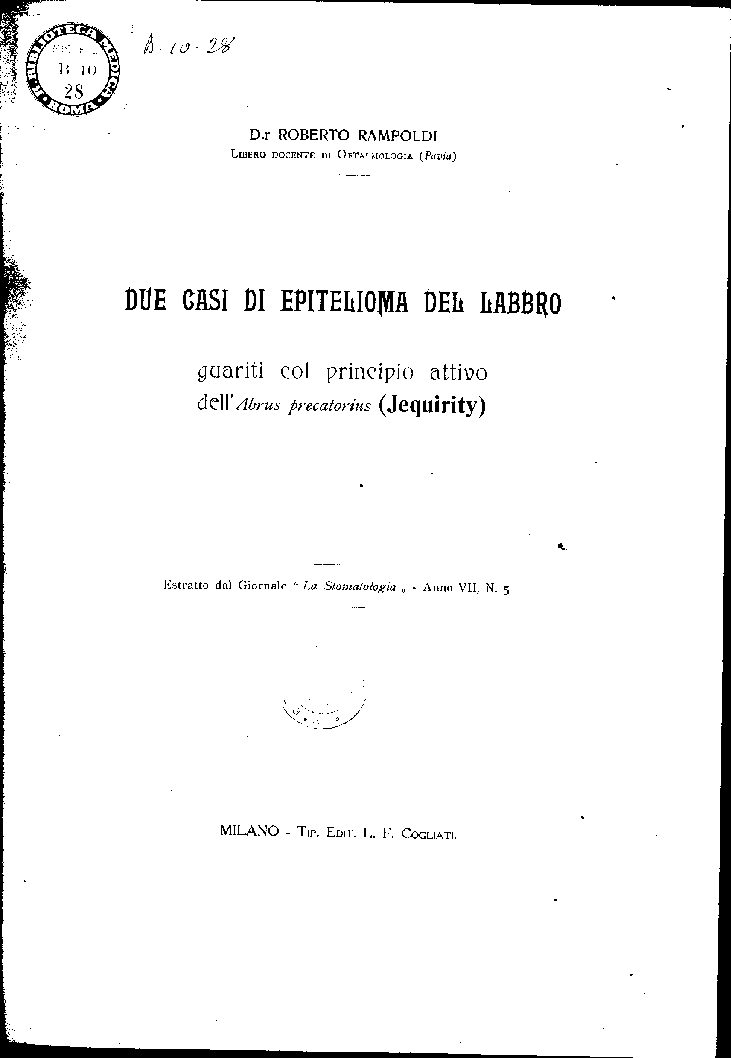 DUE CASI DI EPITELIOMA DEL LABBRO