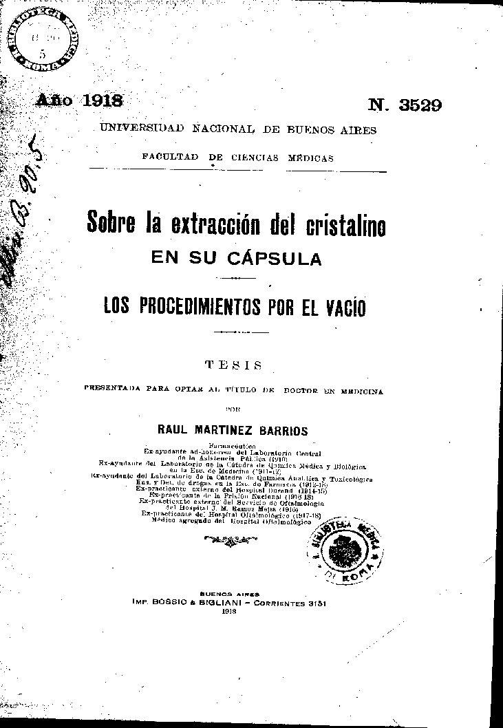 Ex-ayudante del Laboratorio de la Cátedra de Química Médica y Biológica