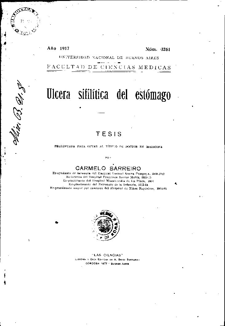 Ex-interno del Hospital Francisco Xavier Muñiz, 1910-15