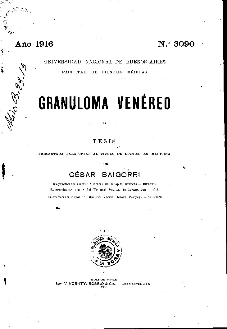 IMP. VINCENTY, BOSSIO & CIA. CORRIENTES 3151
