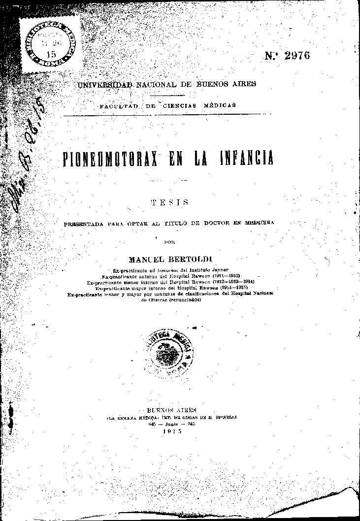 Ex-practicante meyor interno del Hospital Rawson (1914-1915)