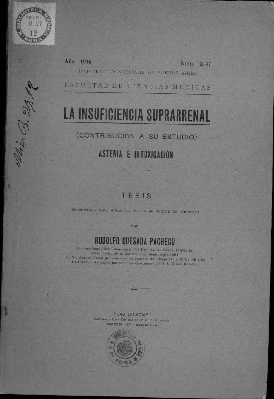 Ex-ayudahte de la Cátedra I de Semiologia (1914)