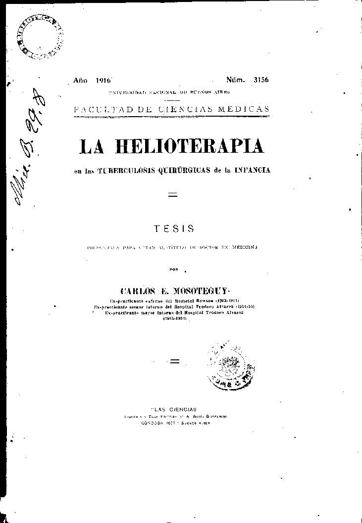 Ex-practicante externo del Hospital Rawson (1913-1914)