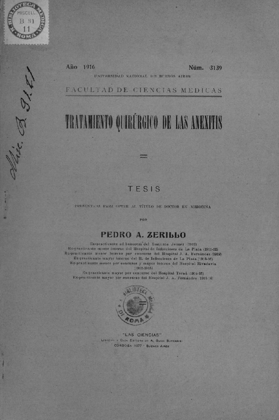 Ex-practicante mayor interno del H. de Infecciosos de La Plata (1913-16)