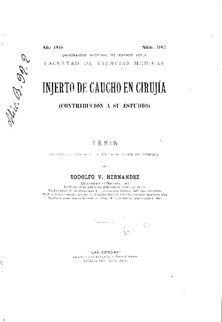 Ex-Practicante menor interno del Hospital Nacional de Clinicas (por concurso), 1914