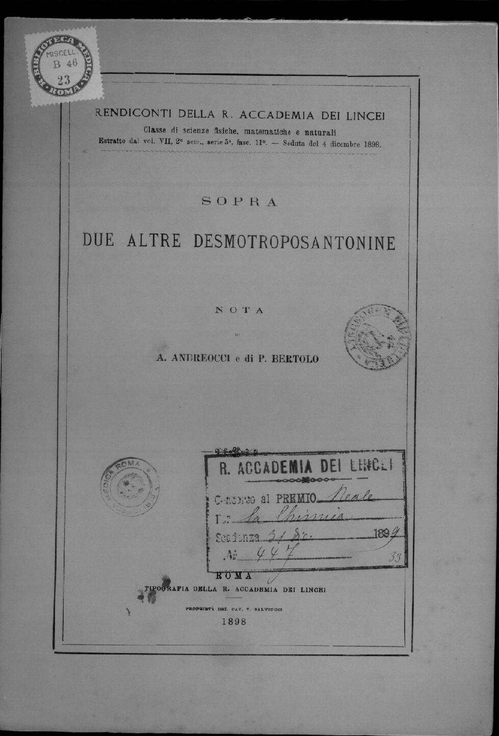 Estretto dal vol. VII, 2º sem., serie 52. Fasc. 11º. – Seduta del 4 dicembre 1898.