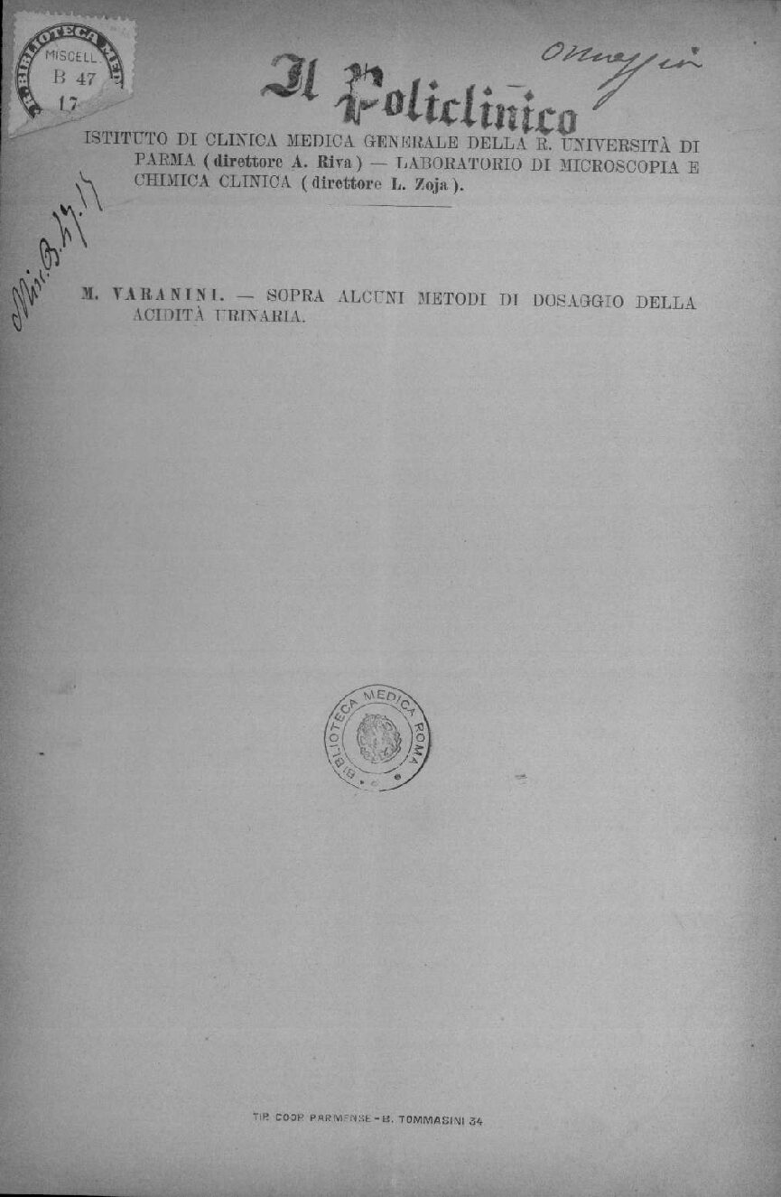 M. VARANINI. — SOPRA ALCUNI METODI DI DOSAGGIO DELLA