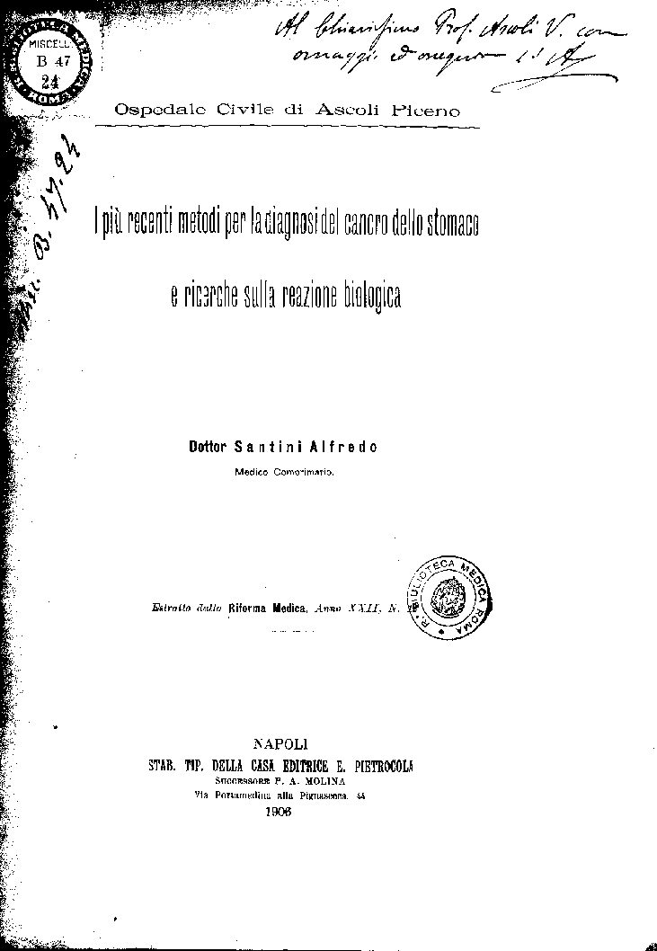 Estratto dalla Riforma Medica, Anno XXII, N.