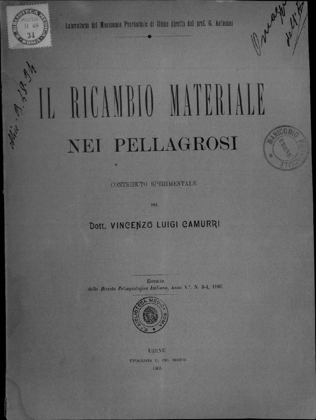 della Rivista Pellagrologica Italiana, Anno V.o, N. 3-4, 1905