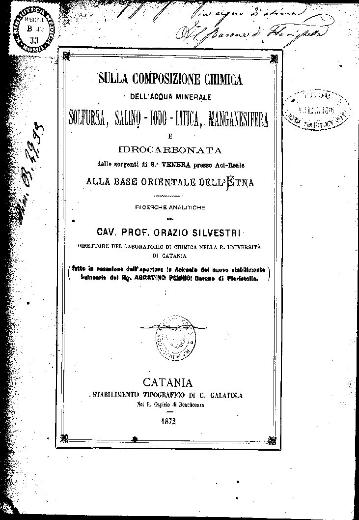 balneario del Sig. AGOSTINO PENNISI Barone di Floristella.)