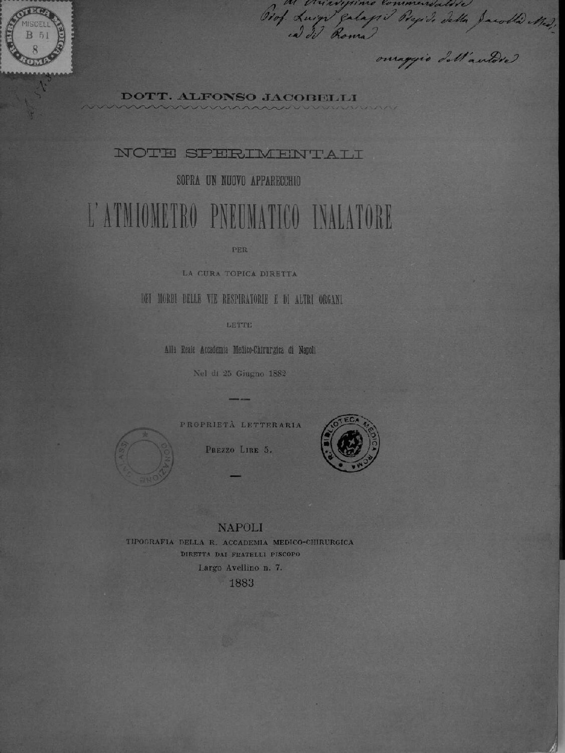 Alla Reale Accademia Medico-Chirurgica di Napoli