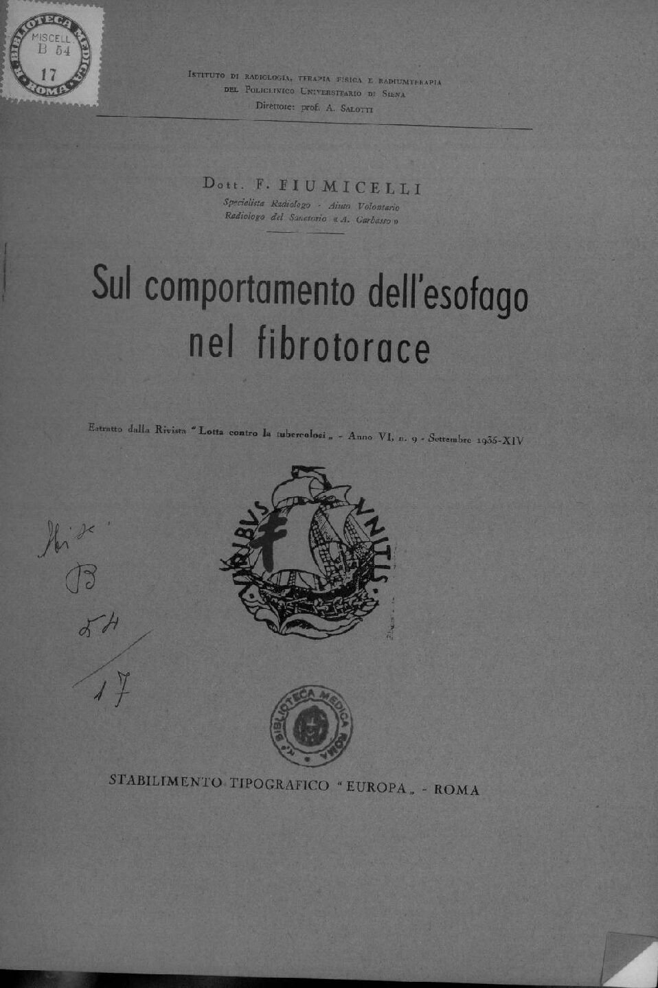 Estratto dalla Rivaista Lotta contro la tubercolosi ,, – Anno VI, n. 9 Ottobre 1935-XIV