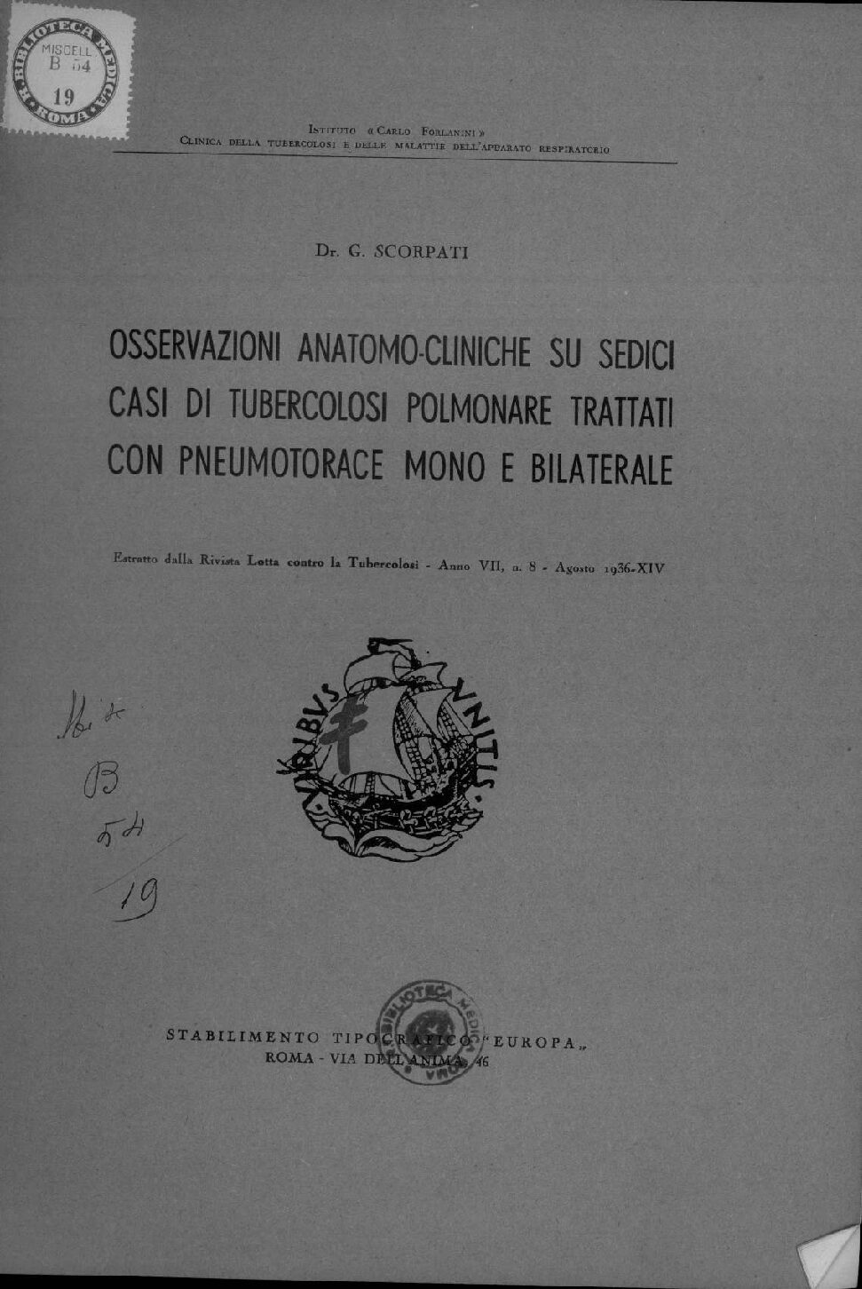 Estratto dalla Rivaista Lotta contro la Tubercolosi ,, – Anno VII, n. 8 Agosto 1936-XIV
