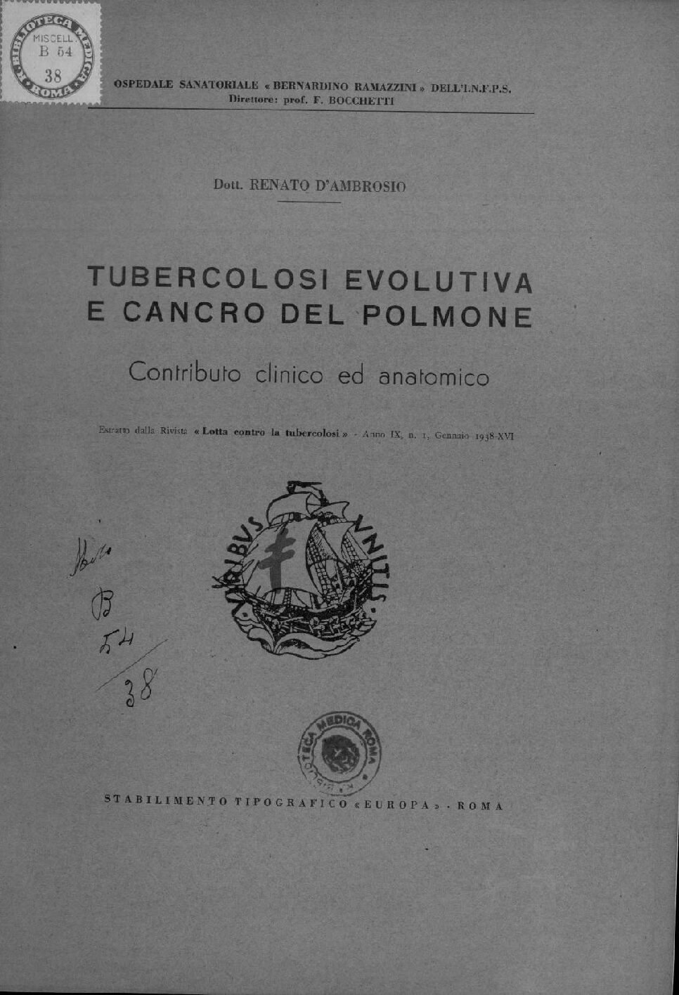 Estratto dalla Rivista « Lotta contro la tubercolosi » – Anno IX, n. 1 Gennaio 1938-XVI