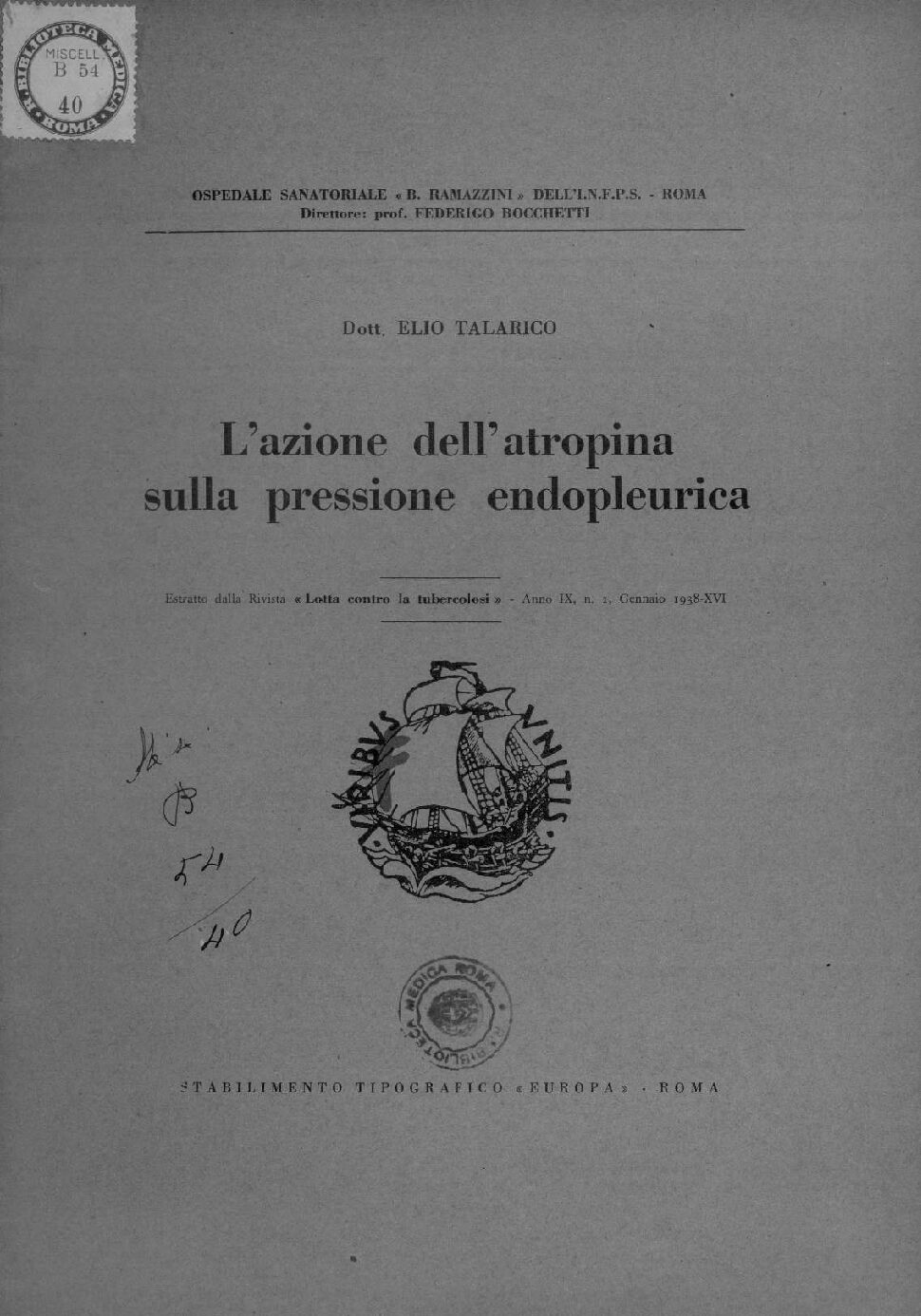 Estratto dalla Rivista « Lotta contro la tubercolosi » – Anno IX, n. 1 Gennaio 1938-XVI
