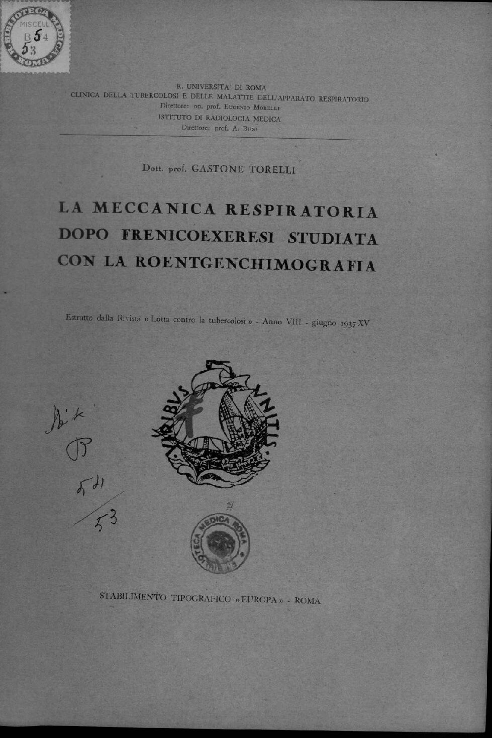 Estratto dalla Rivista « Lotta contro la tubercolosi » – Anno VIII, giugno 1937-XV