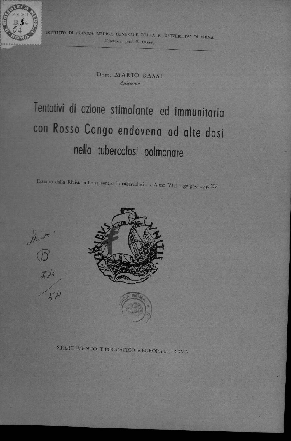 Estratto dalla Rivista « Lotta contro la tubercolosi » – Anno VIII giugno 1937-XV