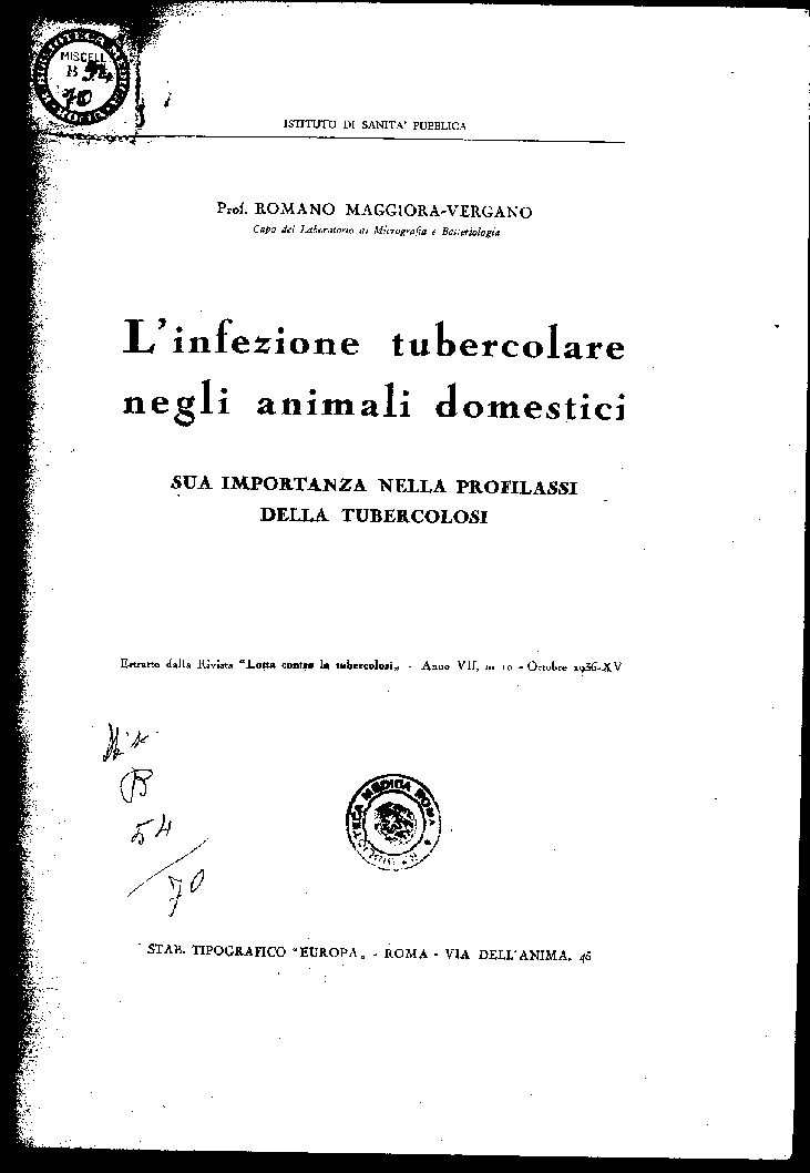 Estratto dalla Rivista Lotta contro la tubercolosi,, – Anno VII, n. 10 Ottobre 1936-XV