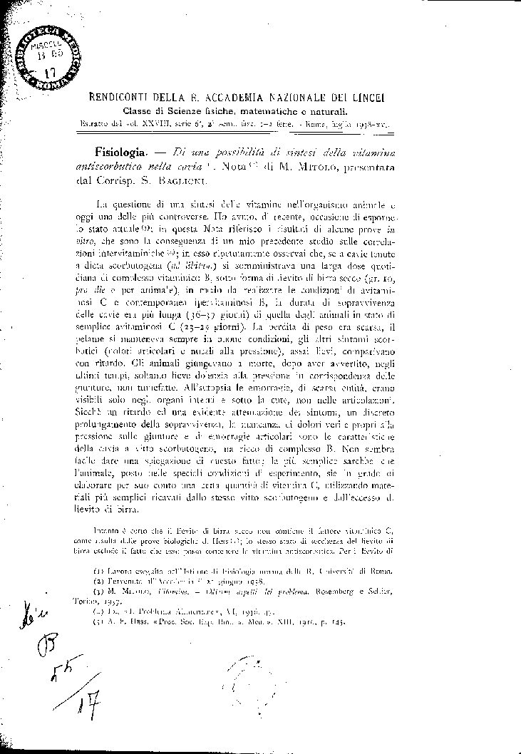 antiscorbutica nella cavia(1). Nota (2)i M. MITOLO, presentata