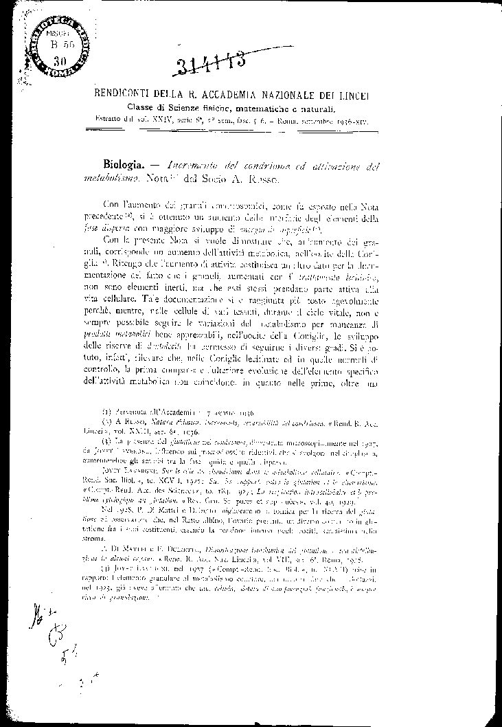 Estratto dal vol. XXIV, serie 6a, 2° sem., fasc. 5-6. Roma, settembre 1936-XIV.