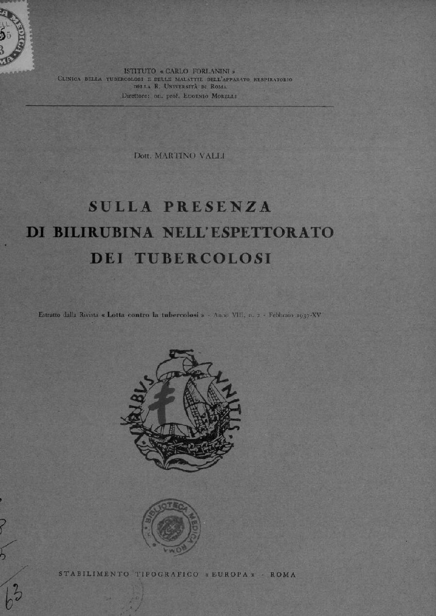 Estratto della Rivista «Lotta contro la tubercolosi » – Anno VIII, n. 2 Febbraiol1937 XV