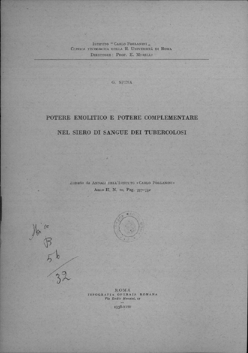 CLINICA TISIOLOGICA DELLA R. UNIVERSITÀ DI ROMA