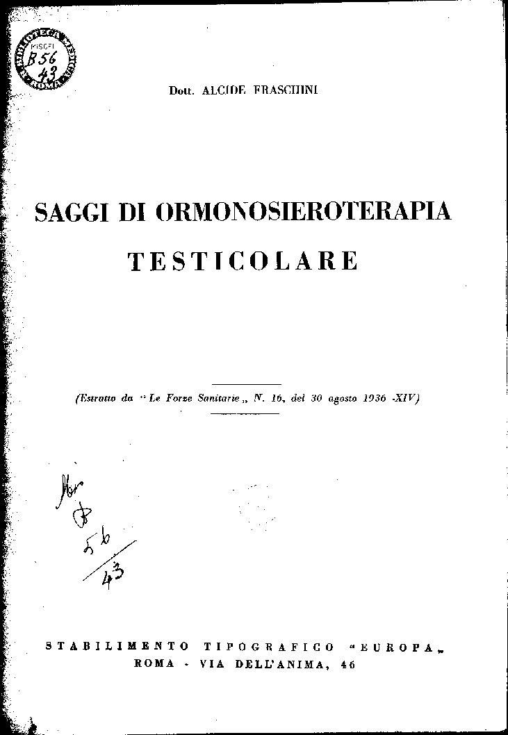 (Estratto da Le Forze Sanitarie,, N. 16, del 30 agosto 1936 XIV)