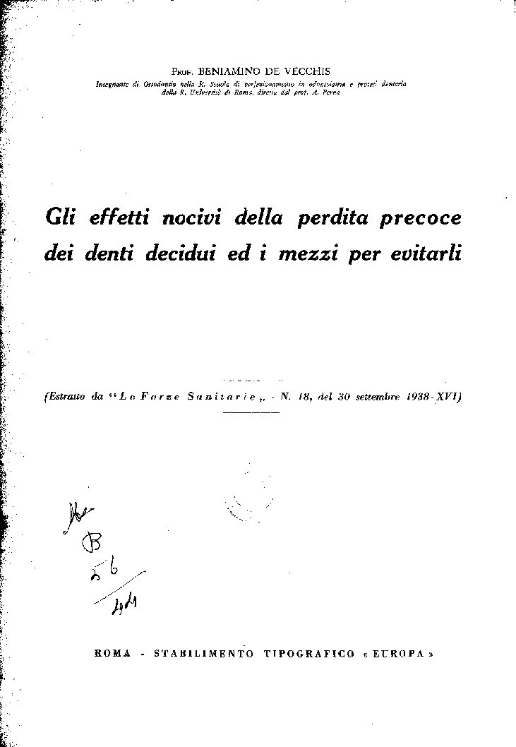 (Estratto da Le Forze Sanitarie,, – N. 18, del 30 settembre 1938 XVI)